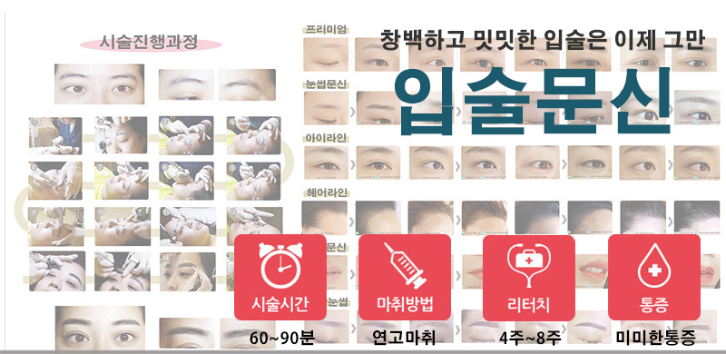 천연색소를 이용하여 입술표면을 매끈하게 그리고 볼륨감있게 시술하여 입술이 창백하거나 밋밋하여 생기없어 피곤해 보이는 입술과 입술선이 선명하지 않을 경우에 일대일 고객 맞춤 상담을 통하여 1회용도구와 디지털머신을 이용하여 통중을 최소화하고 촉촉하고 생기있는 입술을 완성합니다.